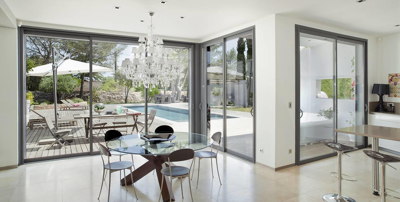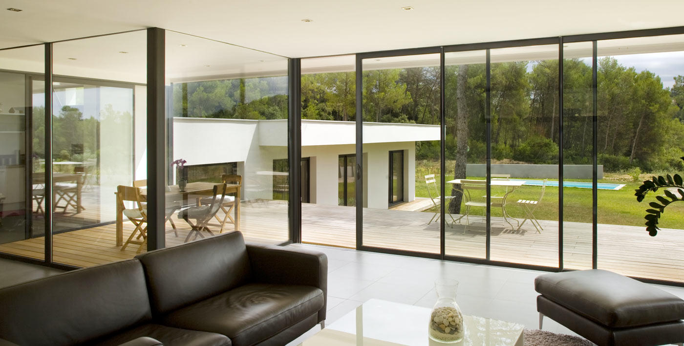 Toujours inégalé, le coulissant en aluminium autorise la création des baies les plus larges, les plus confortables et les plus économiques.